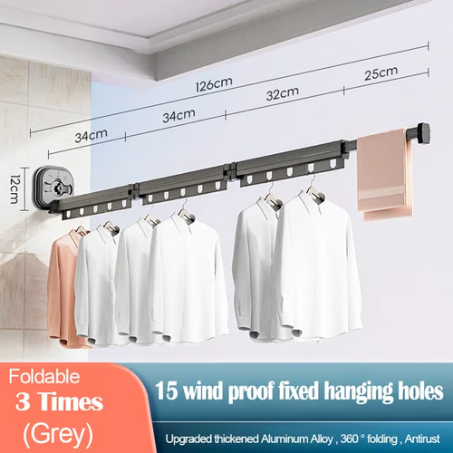 🔥Foldable 3 Times - No-Punch Telescopic Folding Drying Rack